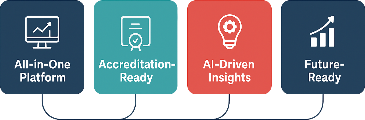 Campus-2047 AccrediSure provides a comprehensive compliance platform that streamlines all aspects of institutional accreditation readiness: